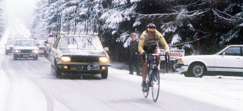 “Decidí que la única cosa que podía hacer era rodar tan fuerte como pudiera para mantenerme caliente”, dijo el mítico francés Bernard Hinault apenas finalizada la edición de 1980, año en que la nieve cayó desde un principio, a tal punto que los comentaristas presentes la denominaron “Neige-Bastogne-Neige” (Nieve-Bastoña-Nieve).