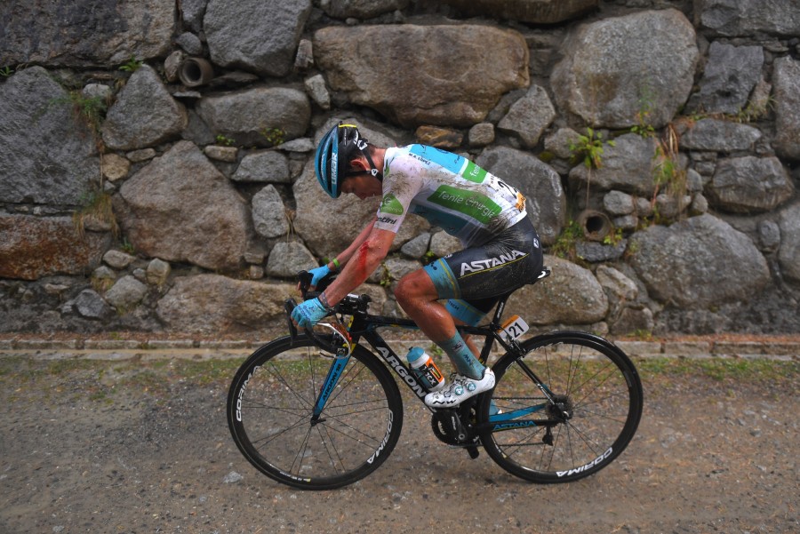Atacó de lejos y se hizo cargo de su favoritismo. Miguel Ángel López, pues de él se trata, puso a su Astana a seleccionar en el Col de la Gallina para lanzar su ofensiva a unos 20 kilómetros de meta. Lamentablemente, la mala fortuna volvió a cebarse con él.