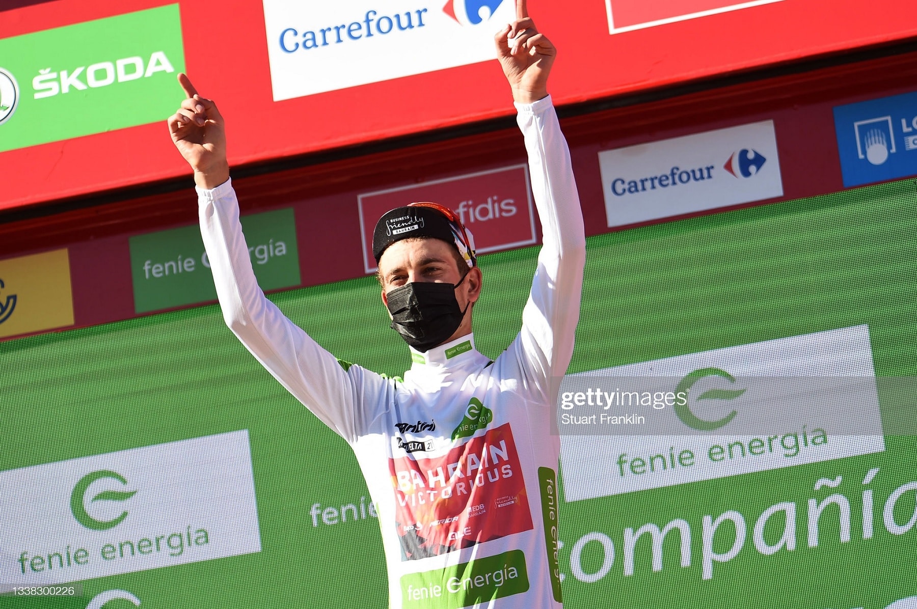 Gino Mäder (Bahrain-Victorious) fue gran protagonista en la penúltima etapa de la Vuelta a España 2021, tirando del grupo de favoritos durante un largo rato. El suizo aguantó hasta el final con los mejores y tuvo su recompensa en meta, obteniendo el 5° lugar en la general y el liderato de los Jóvenes.