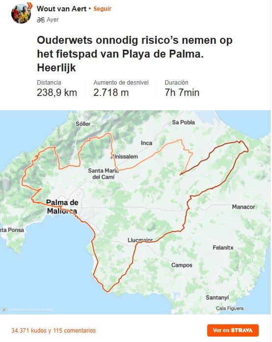 Actualmente se encuentra en una concentración en Mallorca donde realiza duros entrenamientos para afinar su condición. ¿Un ejemplo de ello? Ayer se entrenó durante siete horas, recorriendo 239 kilómetros y un desnivel total de 2.700 metros, a una velocidad media de 33,5 km/h, según su publicación de Strava. Todo ello precedido de un “trote” de 30 minutos a una velocidad media de 13,5 km/h, lo que para muchos ya sería más que suficiente para una jornada de entrenamiento.