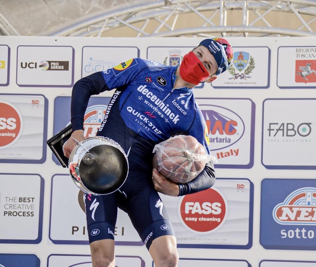 🇮🇹 #GPLarciano Mauri Vansevenant (Deceuninck-Quick Step) logró su primer triunfo como profesional en el GP Industria & Artigianato.