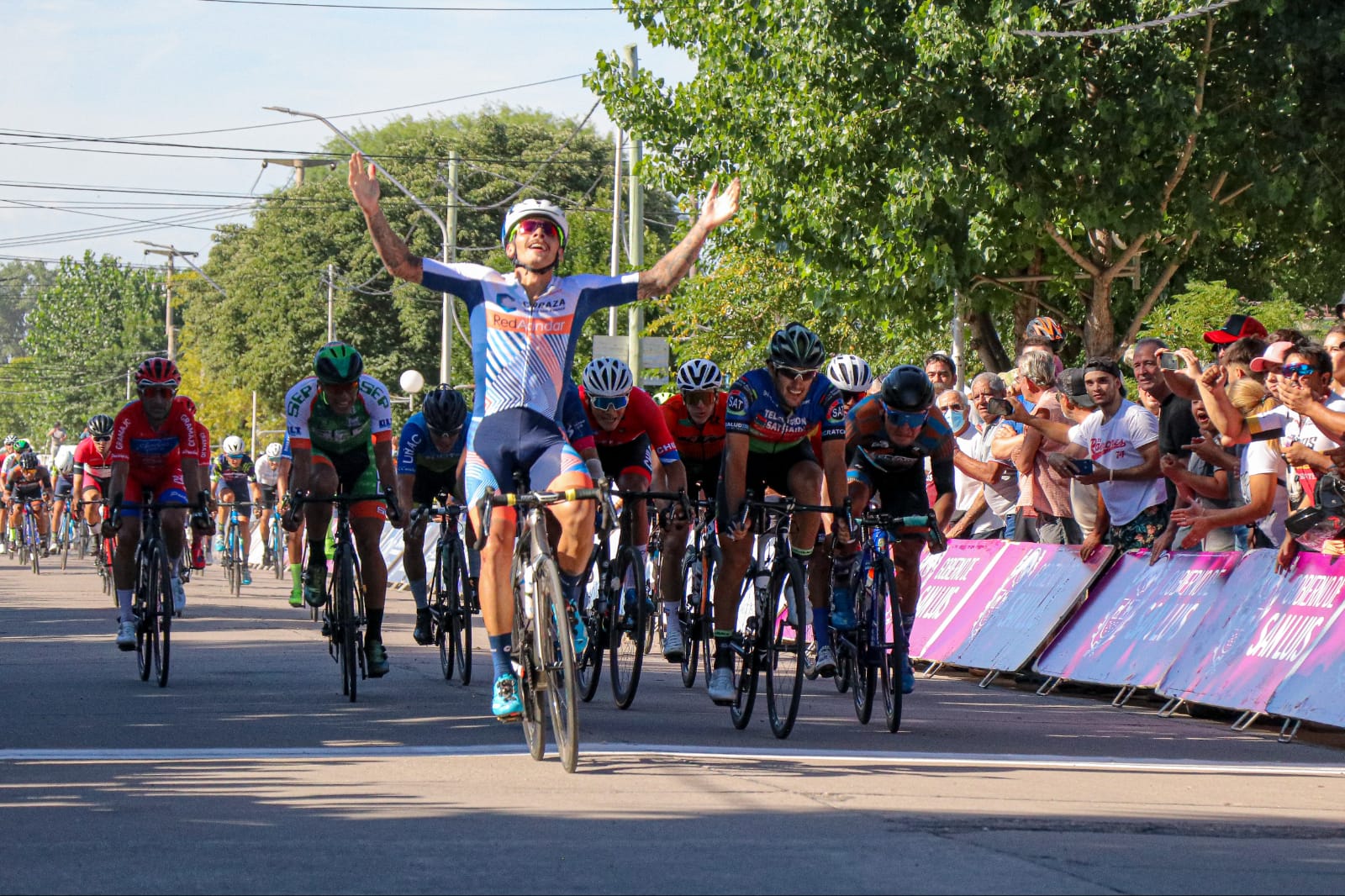 A pesar de haber tenido una caída a 10 kilómetros del arribo, Mauricio Quiroga reingresó al grupo y no solo eso. La ‘Bestia’, quien el domingo pasado había vencido en Junín, Mendoza, exhibió todas sus condiciones al sprint y se llevó un categórico triunfo ante Facundo Crisafulli (SAT) y Lucas Gaday (Equipo Continental San Luis).
