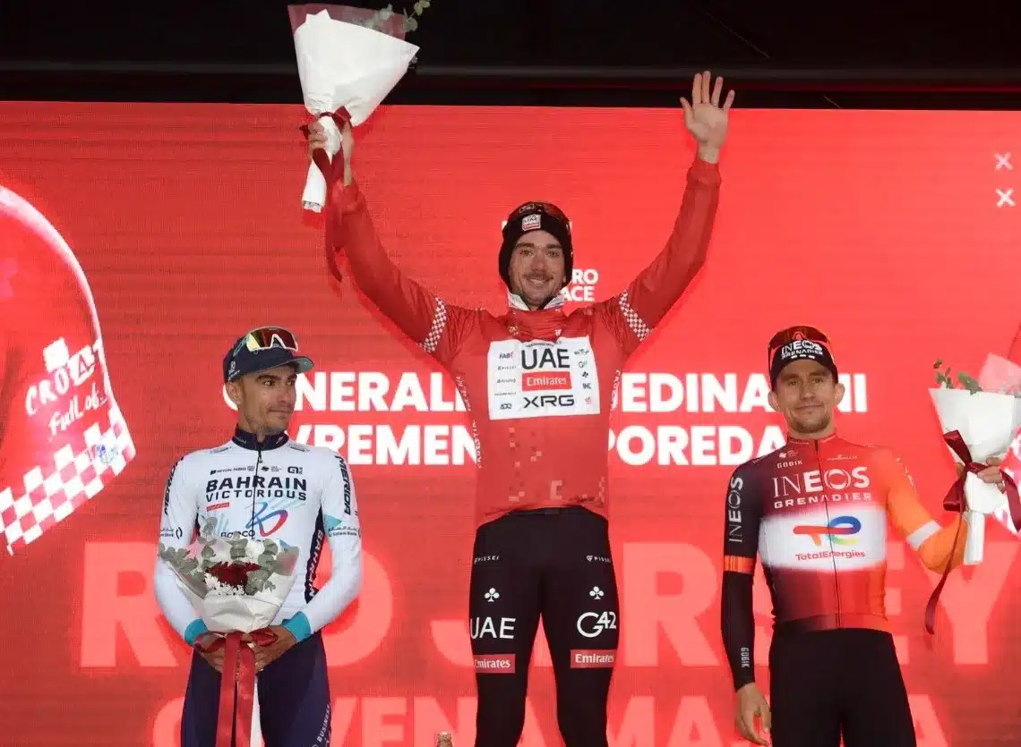 El podio final lo completaron Edoardo Zambanini (Bahrain) a 1:39 y Michal Kwiatkowski (INEOS) a 1:49.