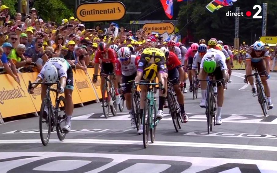 El más fresco fue Mike Teunissen (TJV), lanzador de Groenewegen, quien sorprendió por el margen izquierdo de la calzada. Con una gran aceleración en el cierre y un golpe de riñón final, el neerlandés se llevó un increíble triunfo ante Peter Sagan (BOH). Así, el corredor de 26 años logró la victoria más importante de su trayectoria y se enfundó la prestigiosa camiseta amarilla.