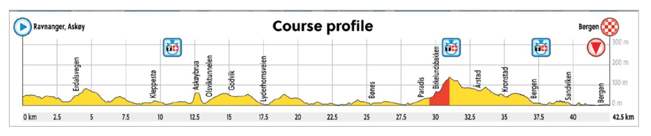 Esta es una Contrarreloj por equipos (CRE) muy dura, posiblemente una de las más exigentes que se haya diseñado alguna vez. El trazado está repleto de colinas que sirven de aperitivo para la difícil trepada que aparece luego de 30 km.