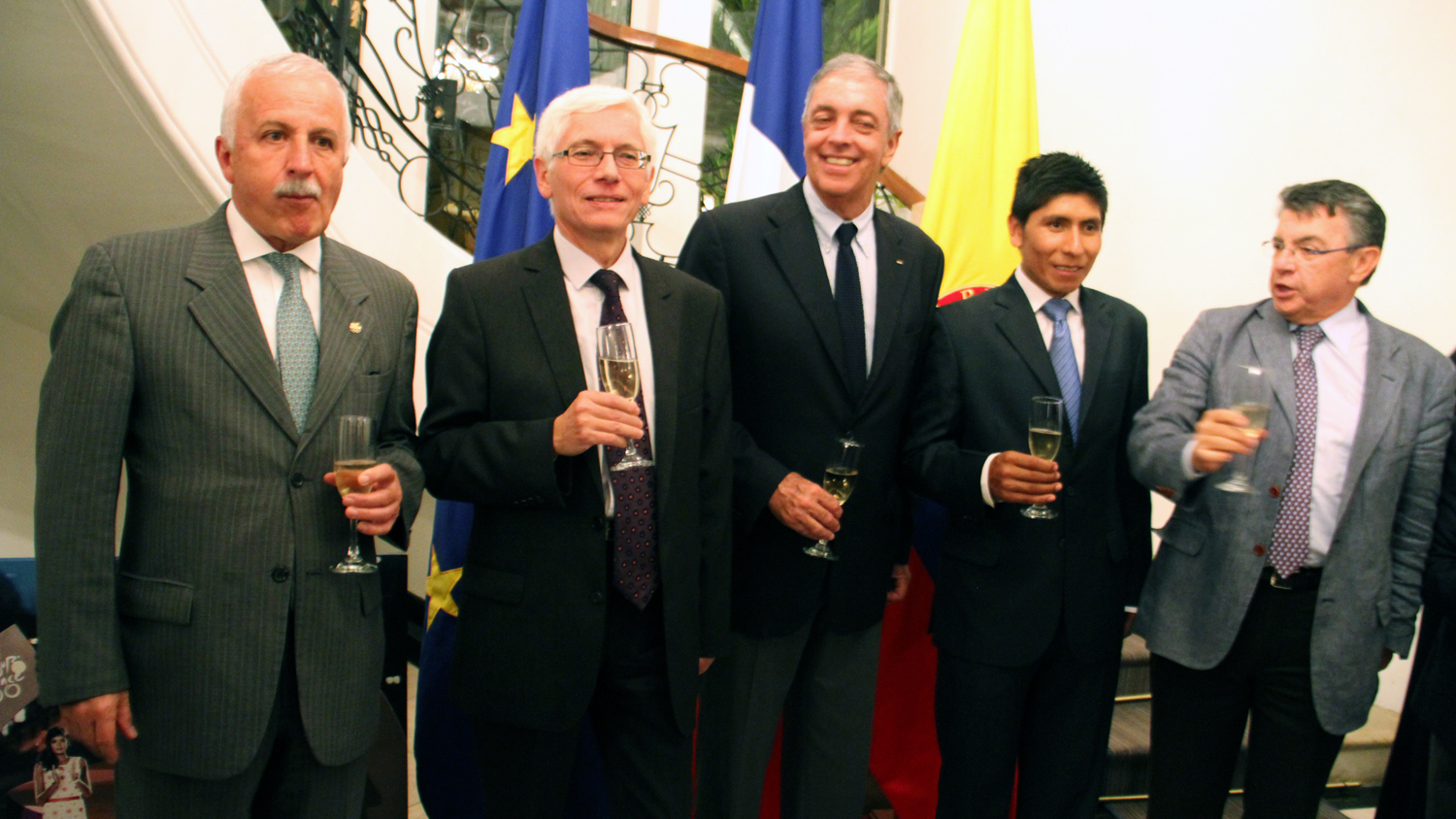 El embajador rememoró la gran gesta deportiva de Nairo y del gran significado del triunfo del corredor boyacense en el centenario del Tour, mientras que el pedalista del Movistar Team agradeció tanto al gobierno Francés, como al Embajador Laforet y a los invitados especiales y a los medios de comunicación que lo acompañaron.