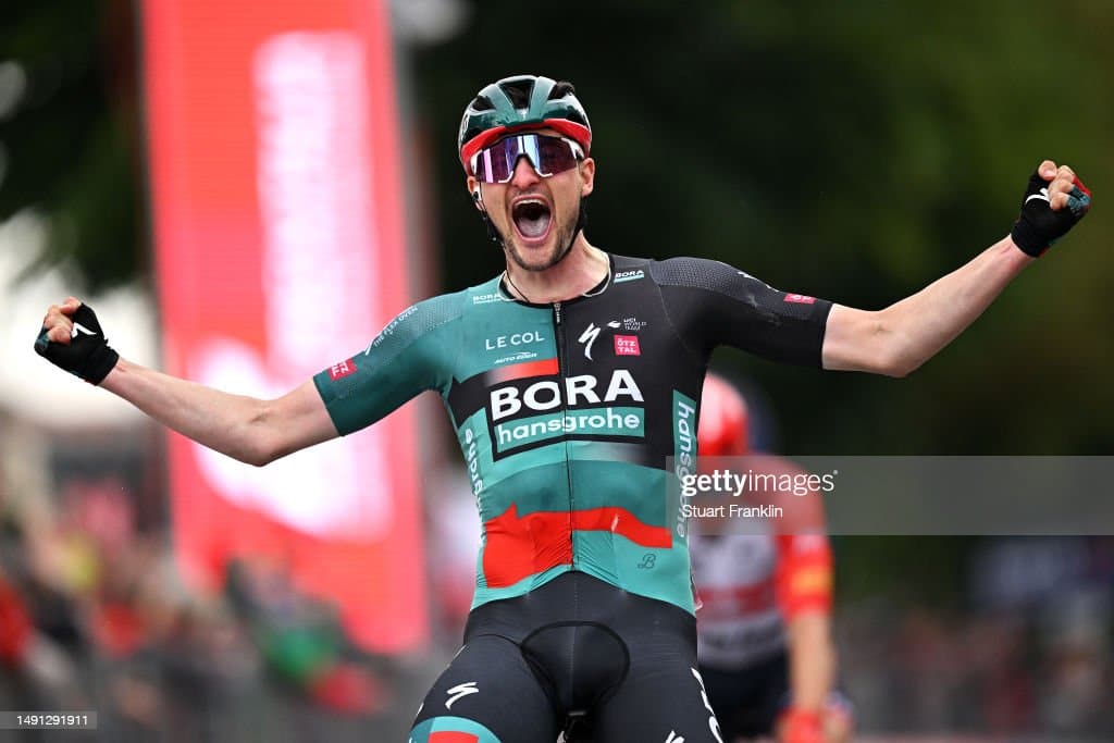 Nico Denz (BORA-hansgrohe) firmó el triunfo en la duodécima fracción del Giro d’Italia 2023, 179 kilómetros entre Bra y Rivoli. El alemán, venció en un sprint de tres de una fuga original mucho más grande, que se desangró por su pésima cooperación.