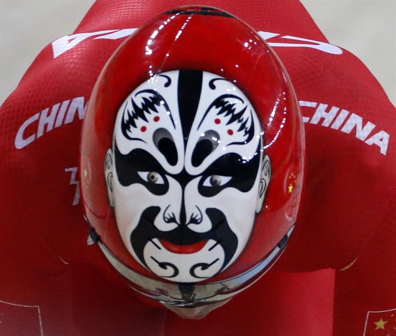 Las caras y máscaras de la ópera china sobre un fondo rojo que decoran la parte superior de los cascos de los ciclistas chinos en Río de Janeiro han causado sensación en China, donde el detalle ha sido aplaudido con orgullo.