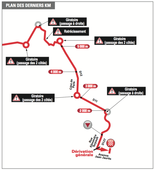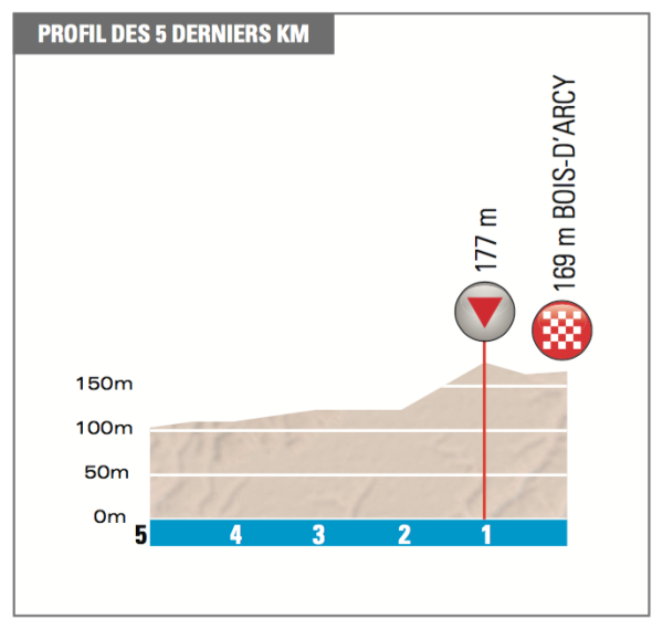 Esto es lo único que debe preocupar a los sprinters. La ruta pica al 5% durante un kilómetro, justo antes de la flamme rouge. Luego hay una bajada y, posteriormente, la recta para el sprint.