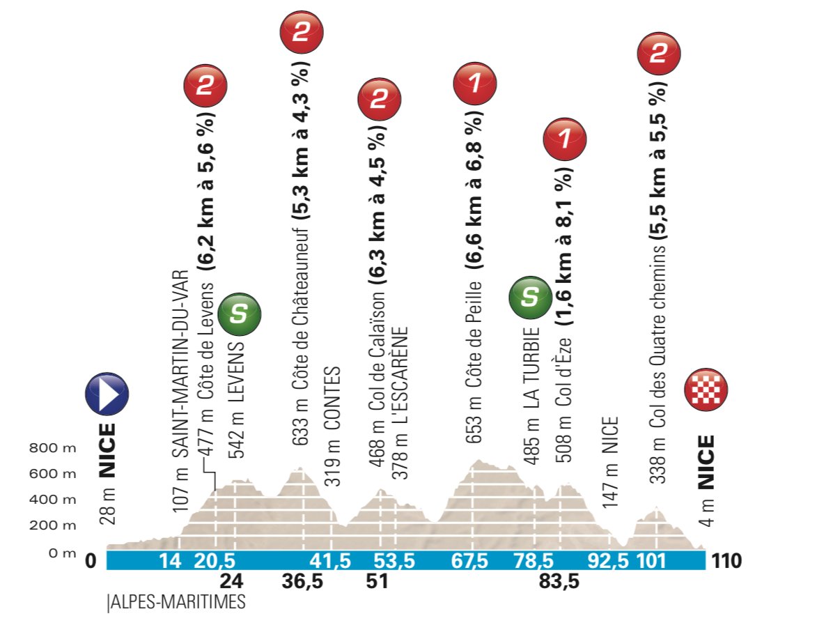 Los organizadores diseñaron una etapa espectacular para cerrar la semana. Un cambio importante respecto a ediciones previas es que no se quedaron con el largo descenso hacia Niza como final, sino que incluyeron una subida más.