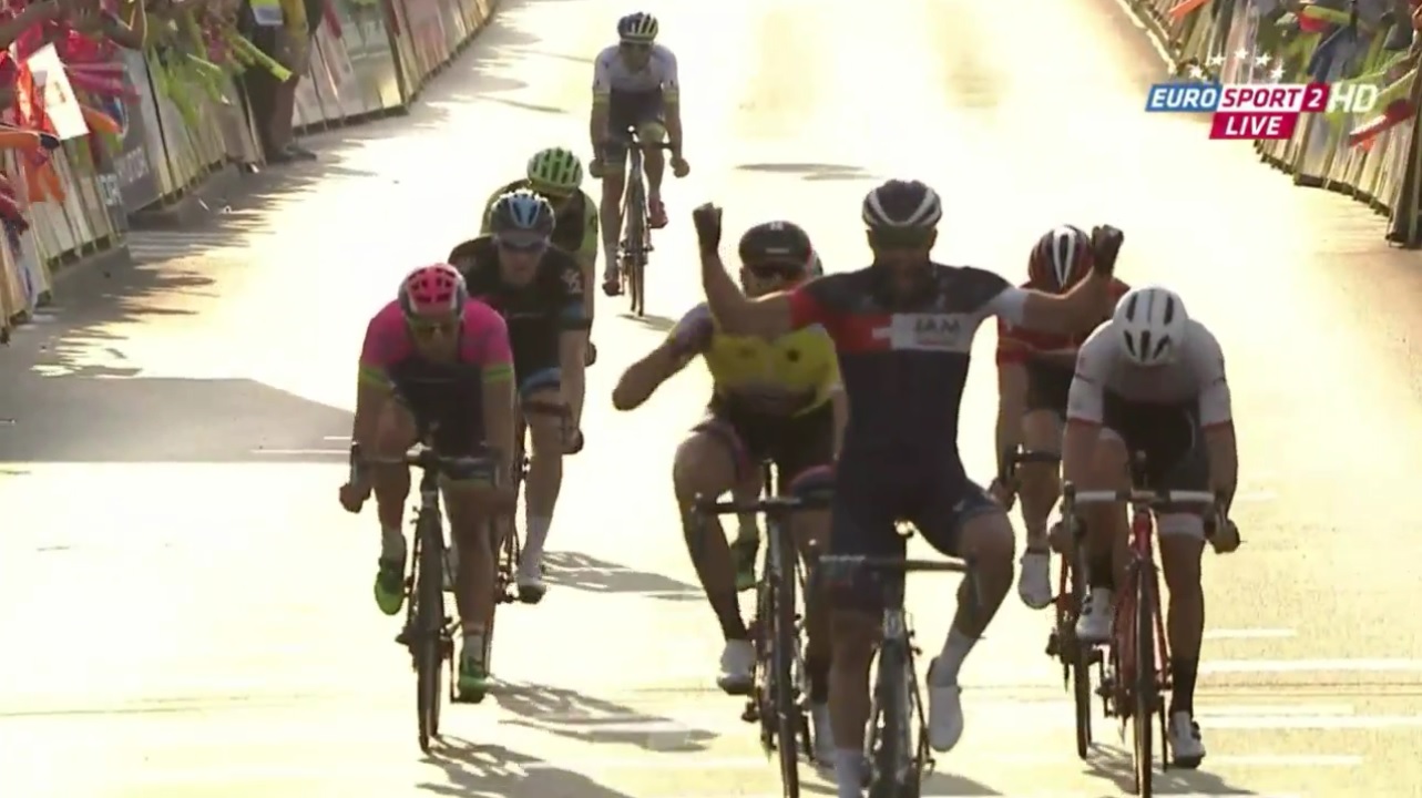 Con sólo nueve pedalistas disputando la victoria, el italiano Pelucchi remontó sin problemas por el lado izquierdo a su compatriota Nizzolo (Trek) y no tuvo oposición para lograr el primer triunfo del año para IAM Cycling en una prueba World Tour.
