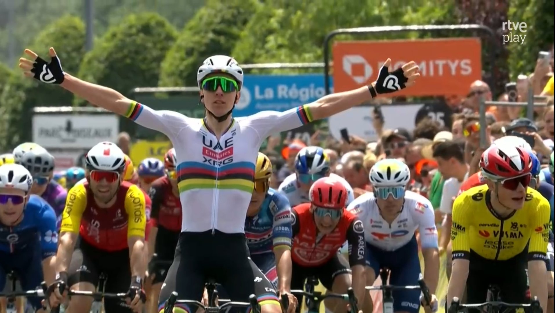 Sorpresa total en la primera etapa del Critérium du Dauphiné. Pogacar le roba el sprint… ¡a los sprinters!