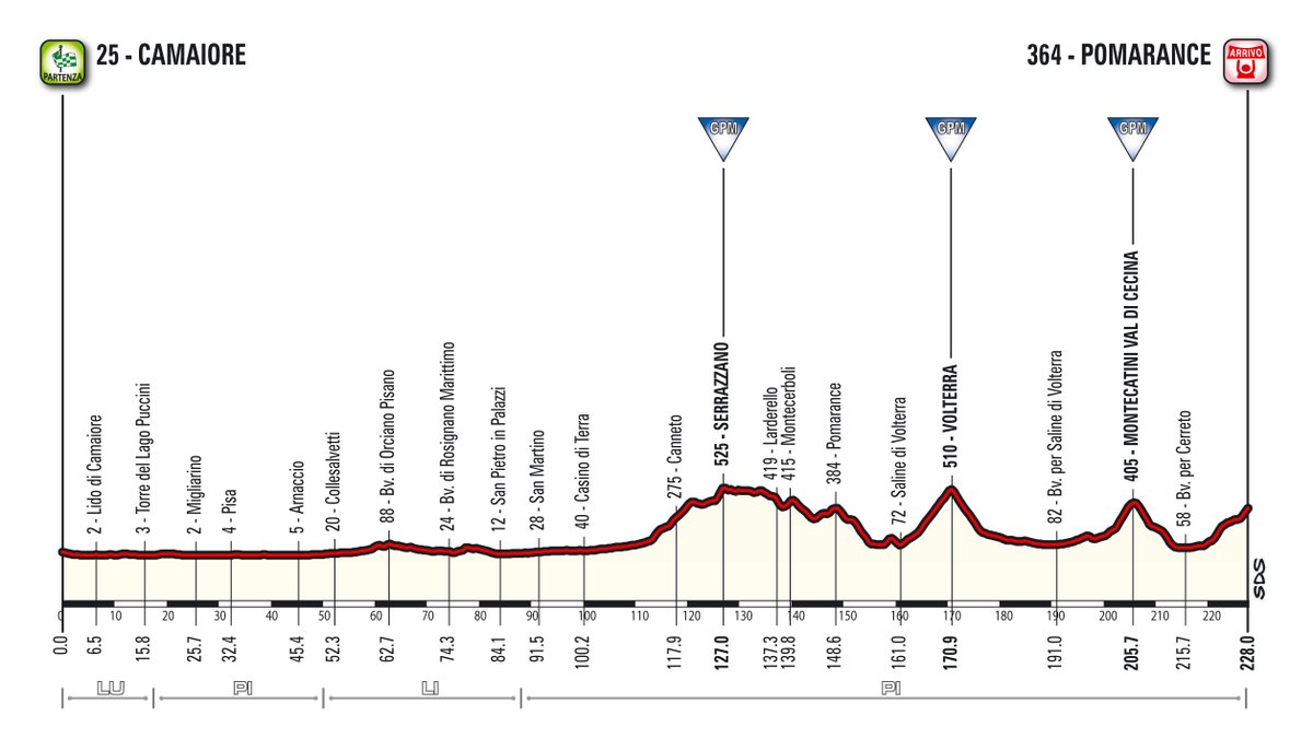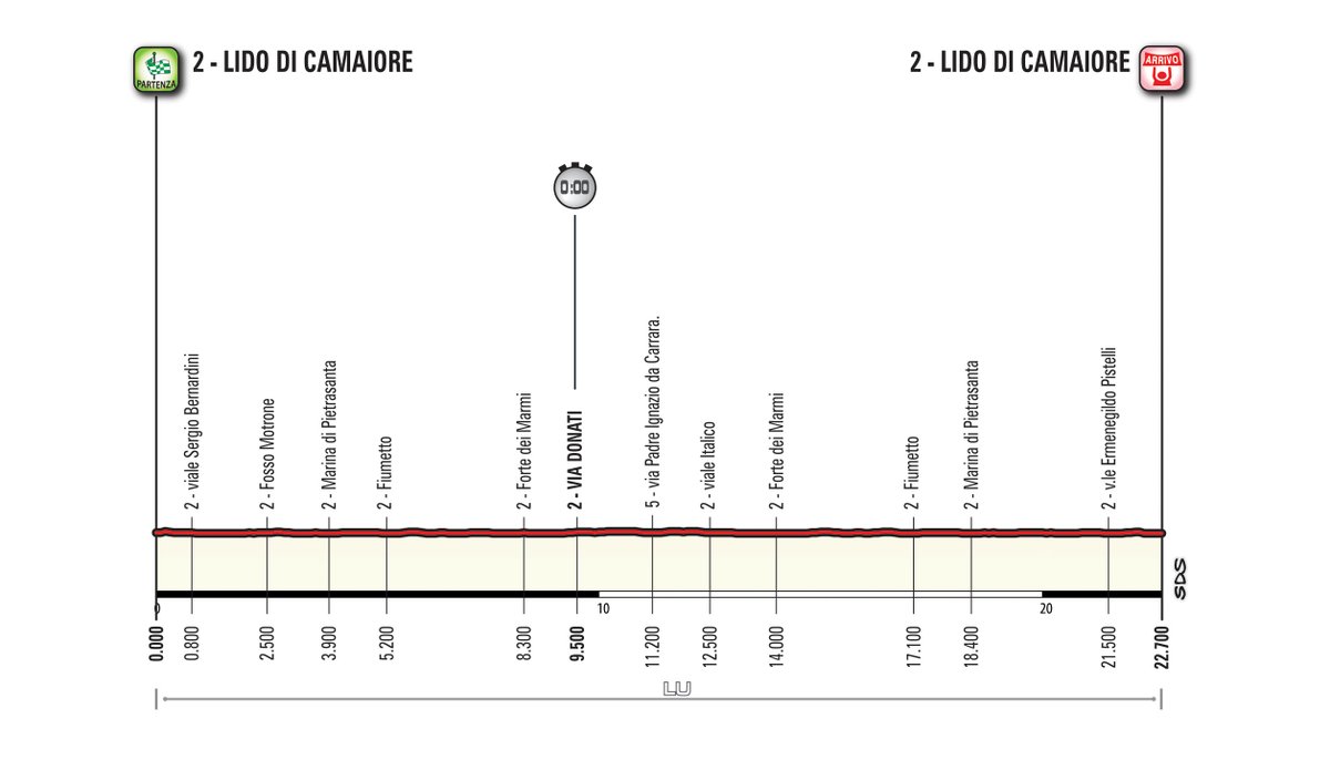El evento, a desarrollarse entre el 8 y el 14 de marzo, iniciará con una contrarreloj por equipos en Lido di Camaiore. Un trazado llano que servirá de aperitivo para la siguiente jornada, ideal para los puncheurs debido a la presencia de múltiples cotas a lo largo de la ruta.