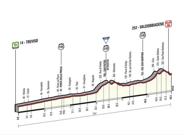 El evento tendrá lugar entre el 9 y el 31 de mayo de 2015, saldrá de la Liguria con una crono por equipos y finalizará en Milán con una larga etapa plana. En el medio, el pelotón afrontará 7 finales de alta montaña y una crono individual larguísima de 59,2 kilómetros como puntos salientes.Pasando en limpio, las llegadas en alto son: Abetone (5°), Campitello Matese (8°), Vicenza, Monte Berico-1km al 8%- (12°), Madonna di Campiglio (15°), Aprica (16°), Cervinia (19°) y Sestriere (20º.