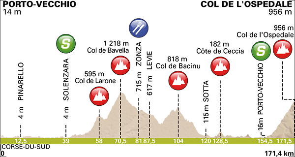 El tramo finalizará tras 171.5 kilómetros, luego de ascender el Col de l´Ospedale, un puerto de 14,1 kilómetros de extensión con una pendiente media del 6,2% y una máxima del 10,4% donde conoceremos al nuevo ganador del Criterium.