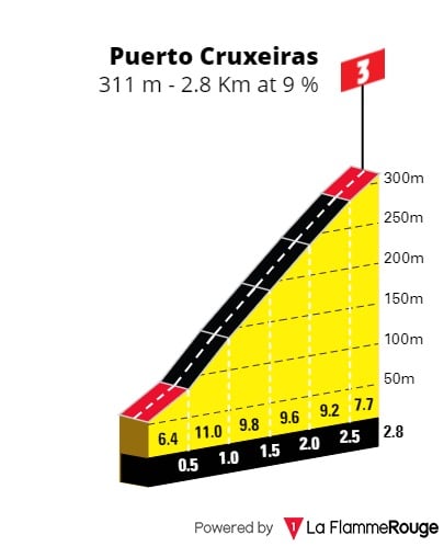 - Puerto Cruxeiras (2.8 Km al 9.0%)