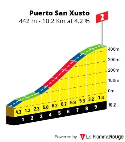 - Puerto San Xusto (10.2 Km al 4.2%)
