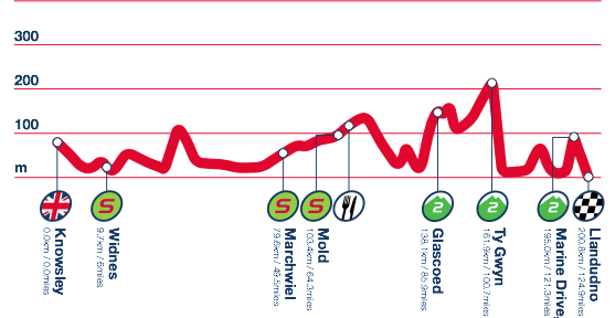 No debemos olvidar que también hay un puerto de 2° categoría, Glascoed, de 3km al 6%, y luego la subida a Ty Gwyn de 2.8km alrededor del 5%. Como ven, son son muy largas ni duras y los embaladores sí las pasarán.