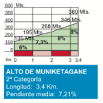 Esta jornada pudo haber estado marcado por los amantes de las escapadas, pero luego de que los líderes fallaron a la hora de quitarse tiempo en la etapa 4, todo indica que se tomarán revancha aquí. El Alto de Ixua (1º) tiene que ser el foco de la acción importante. Sus 6.6km al 6.6% no la hacen ni la más larga ni dura de las subidas ( los últimos 3.6km son al 8% y el punto de los ataques) pero el hecho de estar ubicada a 25km de meta será importante. Contador atacó de lejos en Tirreno, aunque la subida era más larga y dura, por lo que no creo que pueda hacer tanto daño aquí.