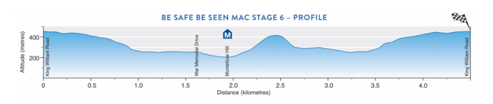 No presten atención a la subida en el perfil -Montefiore Hill- ya que luce más dura de lo que es y consta de apenas 200m al 4%.