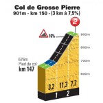 No son monstruos pero sí lo suficientemente exigentes como para hacer daño a los que no tengan su día; Grosse Pierre arranca suave pero el segundo kilómetro es al 11.3% y el conclusivo al 7.7 con rampas del 16% casi donde se corona, es decir, punto ideal de lanzamiento hacia la bajada.