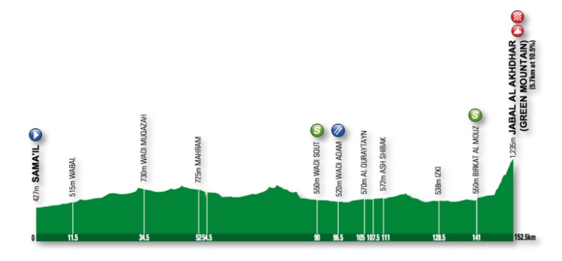 Esta fracción concluye en la ascensión a Quriyat, 2.8km al 6.5%. Implementada el año pasado, fue escenario de un magnífico triunfo de Edvald Boasson Hagen, quien aguantó en la cota y alzó los brazos al sprint. Será un duelo entre puncheurs y escaladores.