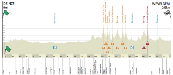 Usualmente, esta competencia favorece a los hombres rápidos, pero eso no será tan así esta vez y, para llegar al cierre en el grupo cabecero, se necesita ser explosivo en el Kemmelberg. Es bueno mencionar que estarán presentes Gaviria, Greipel, Kristoff, Modolo, Wippert, Demare, Haussler, Viviani y Coquard. Para un final como este, lo lógico sería mirar hacia Greipel y Kristoff, pero las cosas cambian y el noruego no luce fino (fue un desastre en la E3) mientras que el alemán aún lucha por regresar de una lesión en las costillas.