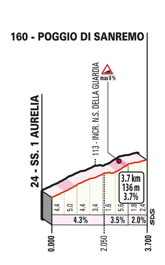 La carrera suele endurecerse en la subida a la Cipressa por los equipos de los favoritos y, una vez desgastado el grupo, los ataques se suceden en la subida al Poggio. La corta distancia y pendiente de esta subida hace difícil que un ataque ahí sea efectivo para demarrar al grupo y hemos visto agarrarse a la carrera en ediciones pasadas a ciclistas como Ewan, Demare o Nizzolo.
