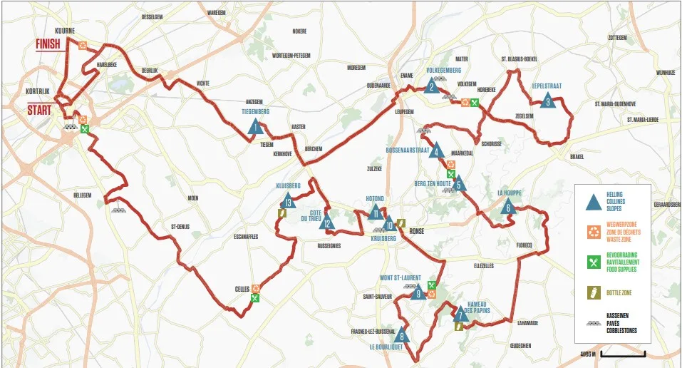 La edición número 81 de esta carrera cubrirá una distancia de 207 km con partida en la ciudad de Gante y llegada en Ninove. Incluye en su recorrido ocho sectores de adoquines y los ya mencionados doce muros: un interesante aperitivo para lo que veremos en las semanas siguientes en otras carreras.