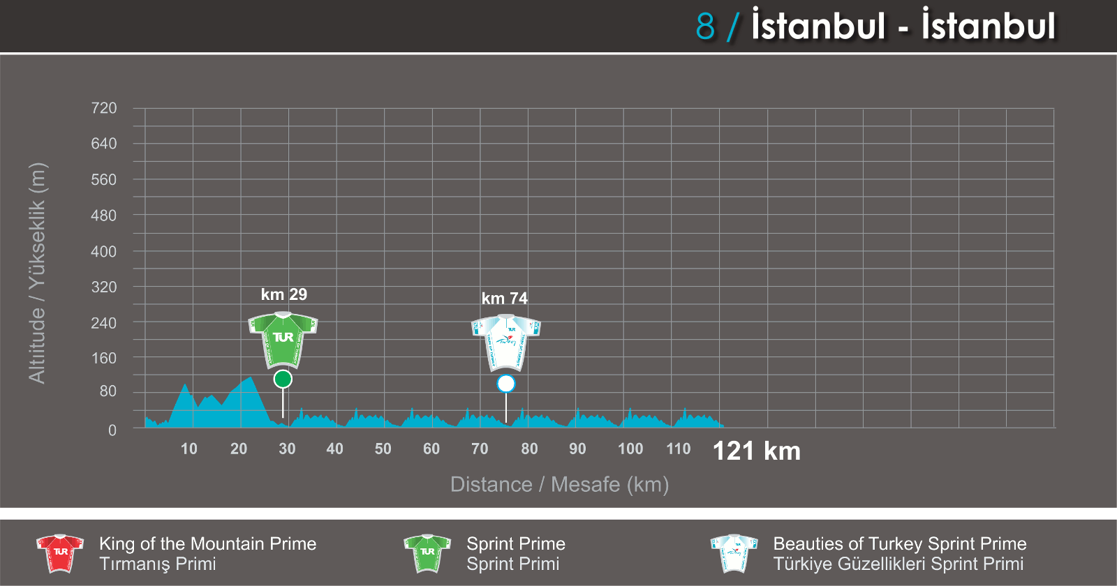 Las jornadas 7 y 8 están destinadas al sprint, con la última dando 8 giros a Caddebostan Coastal Road, un circuito callejero en Estambul donde Kittel impuso condiciones en 2013 y que servirá de paseo triunfal al campeón.