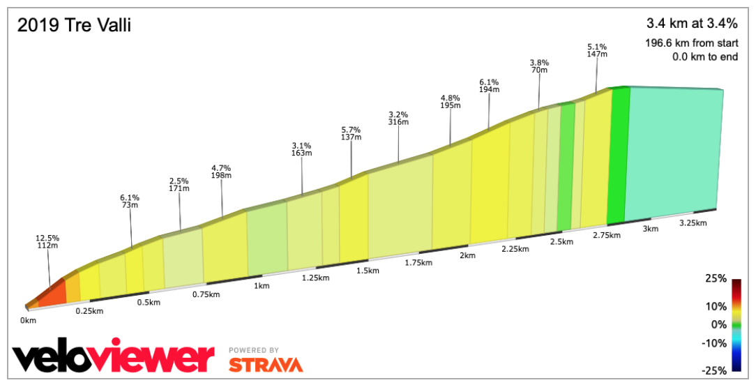 Esta es la subida introducida el año pasado con mucho impacto en el evento. Consta de 1.5km al 8.5% y es lo suficientemente dura como para poner a los velocistas en dificultad. Luego aparece otra ascensión, en la que Urán se despegó del pelotón en la edición anterior.