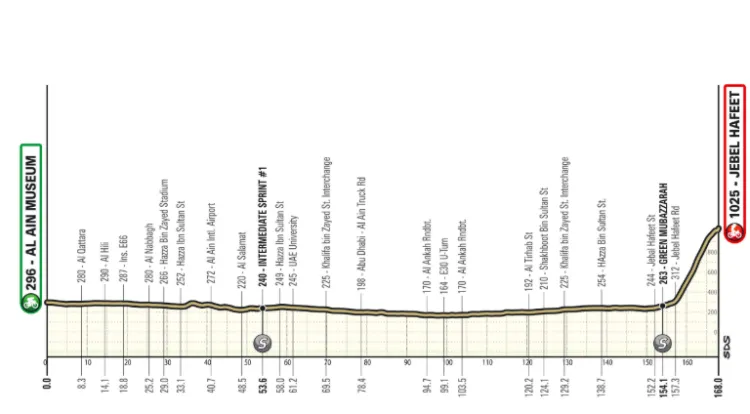 El segundo final en alto esta vez oficiará de penúltima etapa en lugar de última. Jebel Hafeet se prolonga por 10 kilómetros con pendiente media de 9% y máxima de 11%. ¿Oportunidad para consolidar las diferencias de la tercera etapa o para tomarse revancha?