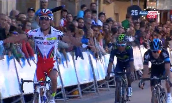 El trío viajó a toda marcha en el corto descenso para jugarse la victoria, que quedó en poder de Purito Rodríguez, al igual que en 2011. Henao fue 2° y Quintana tercero. Kwiatkowski encabezó el siguiente grupo, a siete segundos.