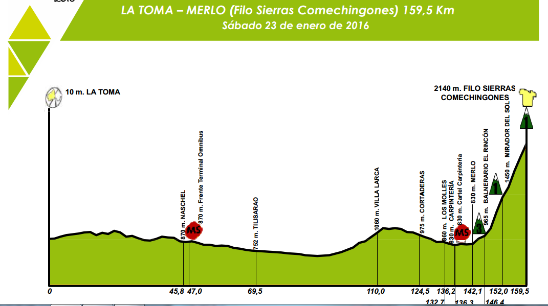 Por supuesto, la supresión del final en alto de Potrero de los Funes, permitirá que la carrera llegue más cerrada a las otras dos cimas del Tour. Esto incrementaría el interés de cara a la ascensión de Merlo, menos selectiva que el Amago, tal como se demostró en 2015, cuando recién en el cierre se abrieron huecos entre los corredores.