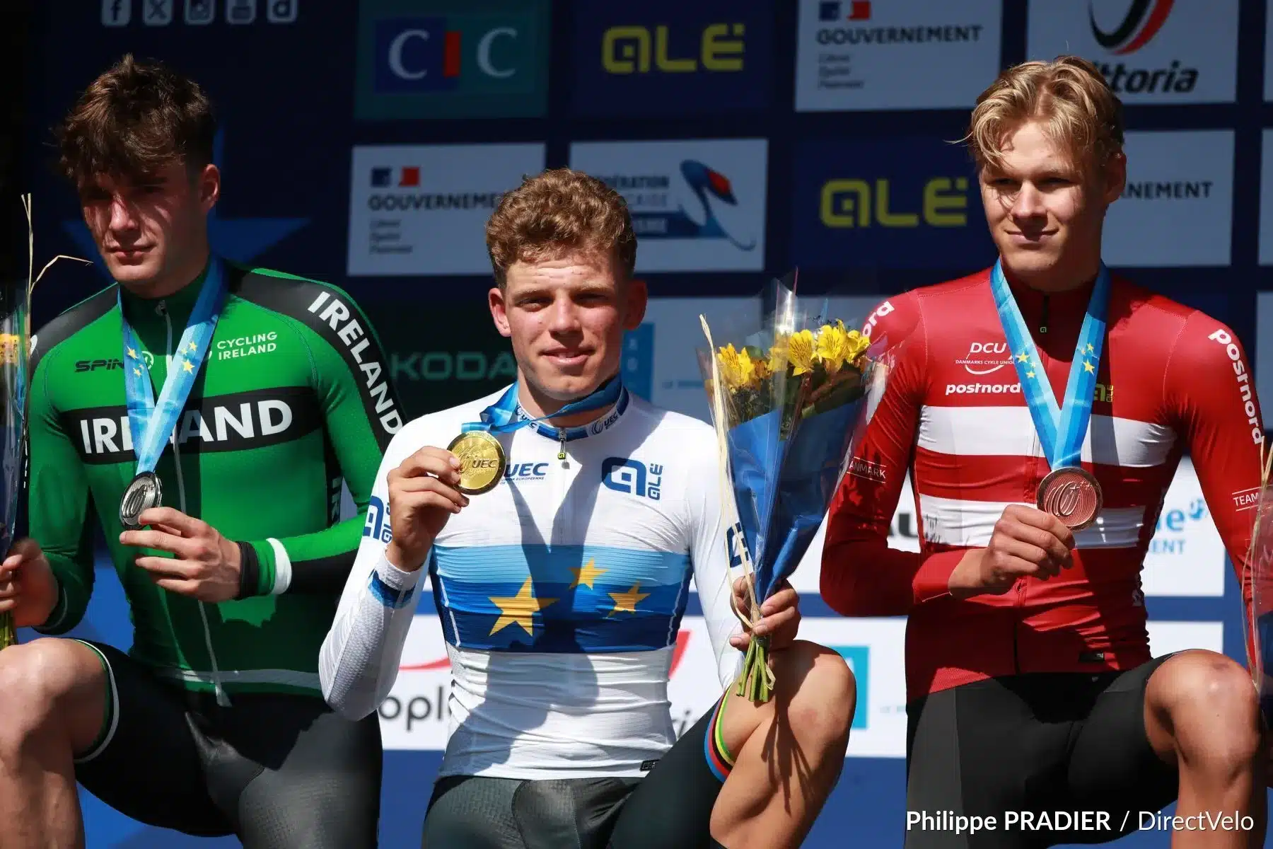 Completó el podio el danés Niklas Larsen a 1:08 que superó de forma ajustada a los británicos Ethan Hayter y Joshua Tarling, por uno y dos segundos respectivamente. Su performance fue una sorpresa: Larsen ni siquiera compite en el WorldTour actualmente sino en un equipo continental: el BHS – PL Benton Bonrholm. Sin embargo, fichó para Unibet –formación proteam- para el año próximo.