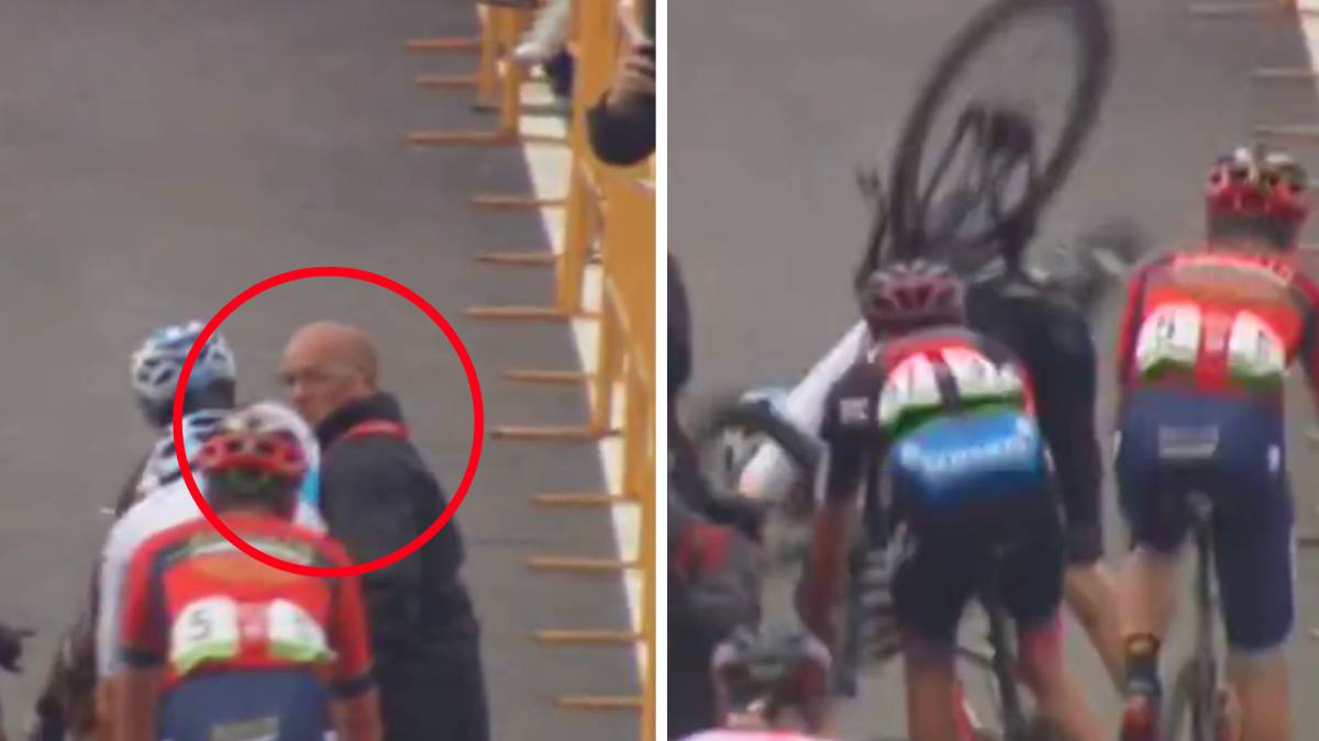 El triunfo de Alexandre Geniez durante la 12° etapa de la Vuelta a España se vio algo opacado tras chocar con un miembro de la organización tras cruzar la línea de meta. Se trata de Chema Rodríguez, quien ha renunciado a su función en la última grande de la temporada.