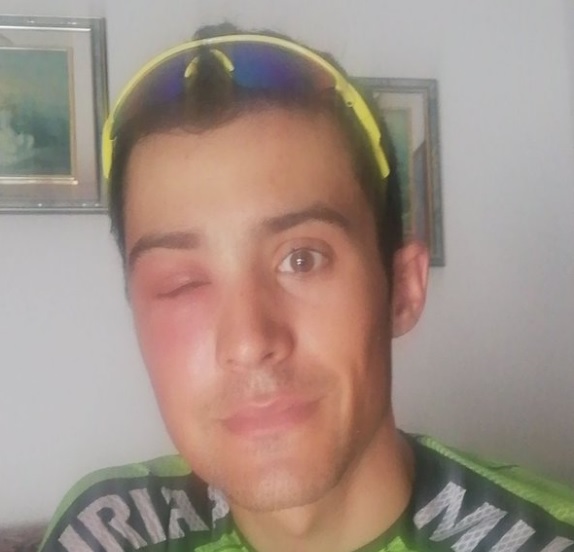 Con toda la razón, el de Euskadi Basque Country – Murias hizo pública su molestia, acompañando la queja con una elocuente fotografía. En la misma, se aprecia la hinchazón en su ojo.