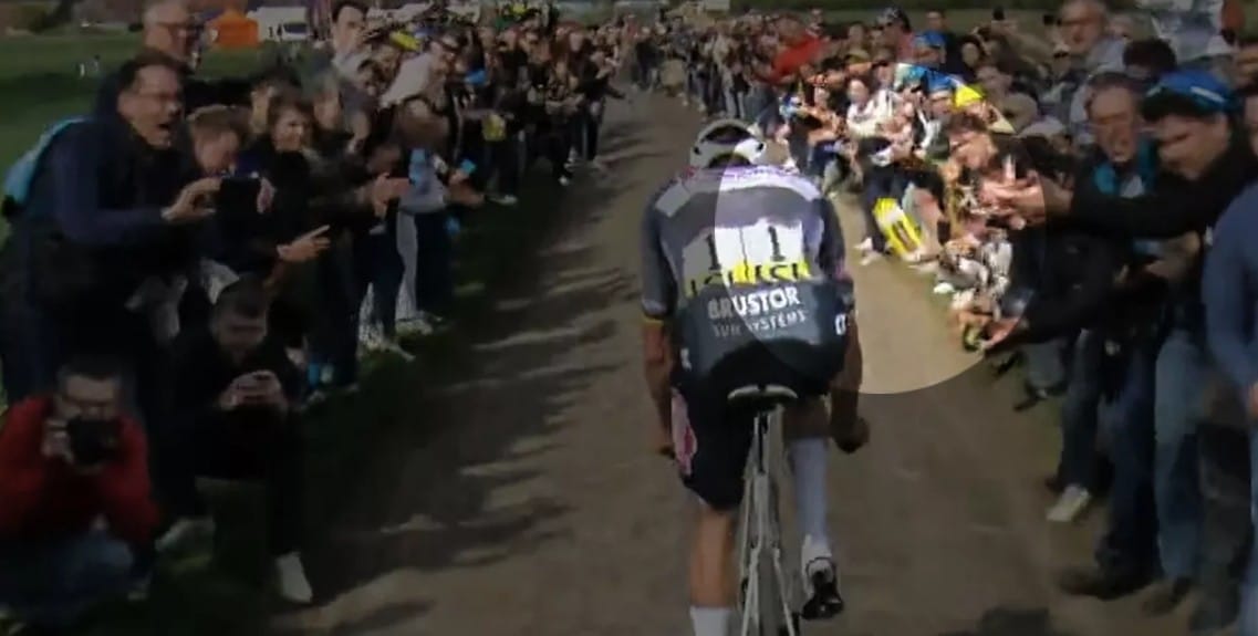 Extra slowmotion from Sporza of a “fan” throwing a bidon into MVDP’s face. #ParisRoubaix pic.twitter.com/cgnNnLx4PH