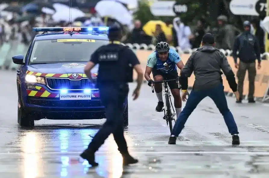 Según informaron Domestique y Cycling News, testigos informaron que un agente del GO CRS (Compañías Republicanas de Seguridad), una unidad especializada de la Policía Nacional Francesa, detuvo al intruso momentos después de que cruzara la línea de meta. El agente de policía lo tacleó y lo retiró del recorrido justo momentos antes del arribo de la etapa que vio coronar a Jonathan Milan (Lidl-Trek).