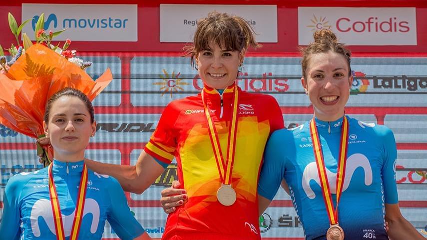 La ciclista riojana ha encabezado una nueva exhibición del Movistar Team, que ha situado además a Oyarbide, Rodríguez y Merino en la segunda, tercera y cuarta posición respectivamente. Iurani Blanco se ha hecho con el título sub23.
