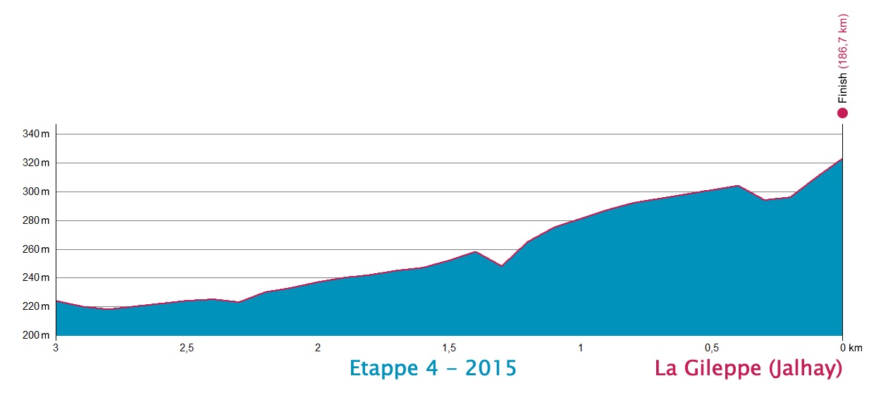 Idéntico parcial al de la última edición, también en el penúltimo día. En aquella ocasión, el belga Philippe Gilbert (BMC) atacó en la rampa final para arribar en solitario, aventajando en 3″ a Wellens y bonificando 10″ en meta al ser 1º, diferencia que le valió el liderato y, luego, el triunfo final. Esperamos lo mismo en esta oportunidad, con un pelotón bastante seleccionado jugándose la etapa. Favorito: Yves Lampaert