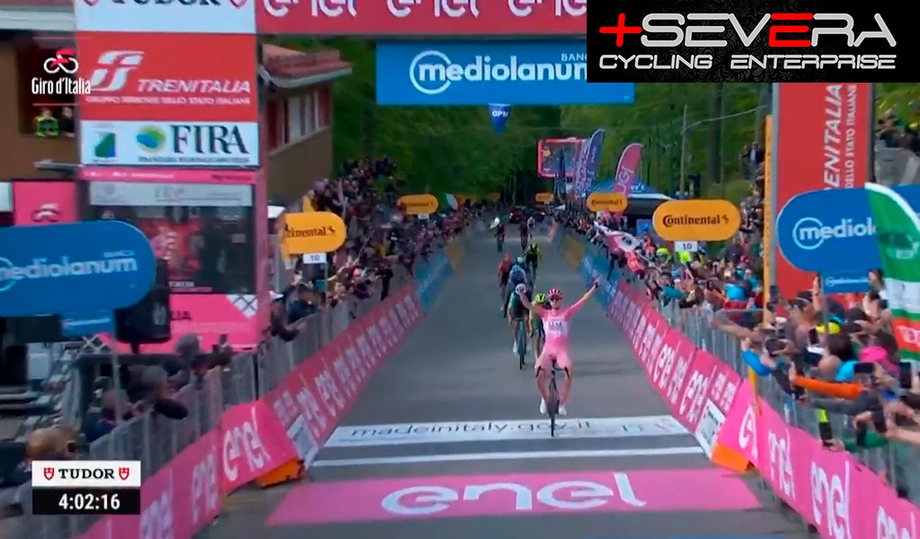 Tadej Pogacar del UAE Tour Emirates, conseguía su tercera victoria de etapa en ´lo que lleva de Giro. Daniel Martínez de BORA – hansgrohe fue segundo y aseguró su posición en la general. Ben O´Connor del Decathlon AG2R La Mondiale Team, cruzó tercero y bonificó cuatro segundos. La clasificación general sigue al comando del corredor del UAE, seguido de Daniel Martínez y Geraint Thomas.