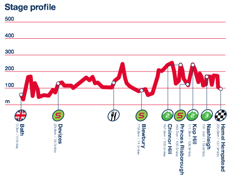 Por David Hunter Etapa 6 Bath – Hemel Hempsted 205.6km Un largo día en el sillín. El pelotón se enfrenta a un complicado y ondulado final de etapa.