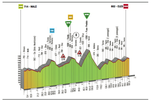 By David Hunter Male – Cles 161.5km The final stage has arrived and the GC is settled. Baring any crashes, Richie Porte will be the overall winner. That means we have a day where two things can happen: breakaway or “sprint” finish!