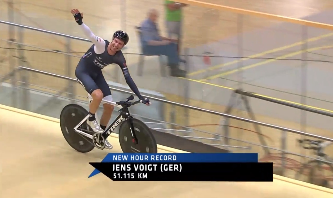 Por @FXavierVidela Jens Voigt logró la última gran gesta de su carrera tras batir el Récord de la Hora en el velódromo de Grenchen, en Suiza, rodando 51 kilómetros y 115 metros en sesenta minutos. Instantes después de las 19:00 (hora local), el alemán que ayer cumplió 43 años, comenzó a dar pedaladas en la pista…
