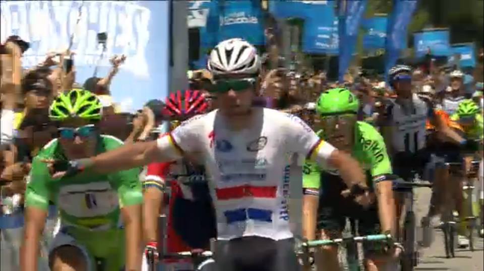 Por @pmpalermo Mark Cavendish ganó la octava y última etapa del Tour de California, 122.4 kilómetros en Thousand Oaks, donde fue el más fuerte en el sprint. Bradley Wiggins se coronó campeón. Todos querían mostrarse este día y tras varios intentos y con 50 kilómetros por delante, Bobridge y Terpstra marchaban con leve ventaja sobre Haga,…