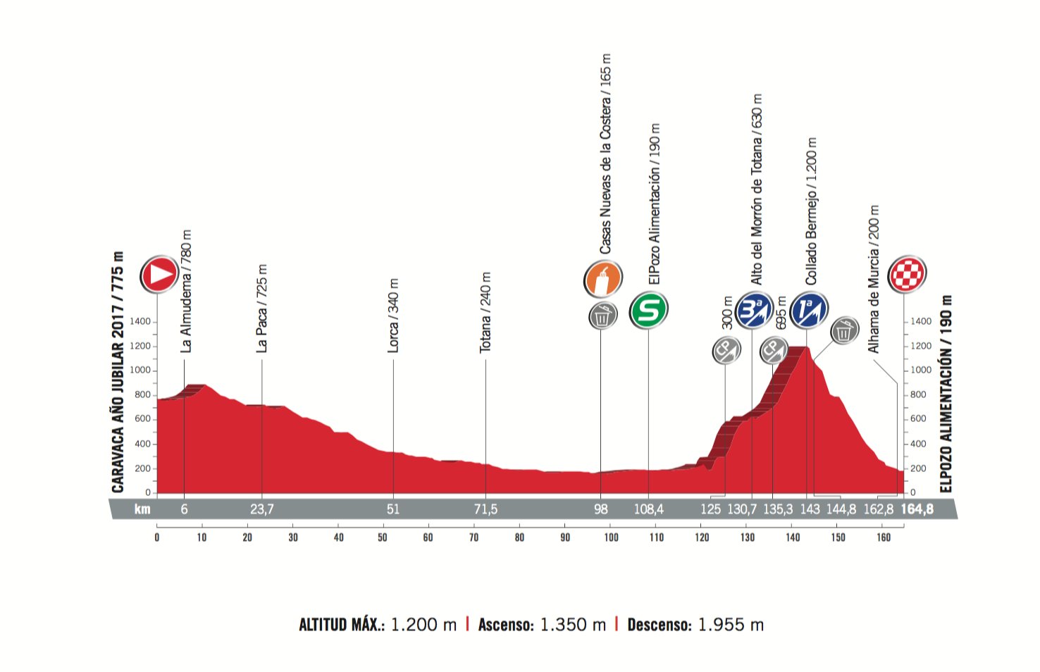 Por David Hunter Caravaca Año Jubilar – El pozo Alimentación 164.8km La segunda semana comienza con un trazado algo extraño, bastante llano pero con un puerto de entidad cerca del final.