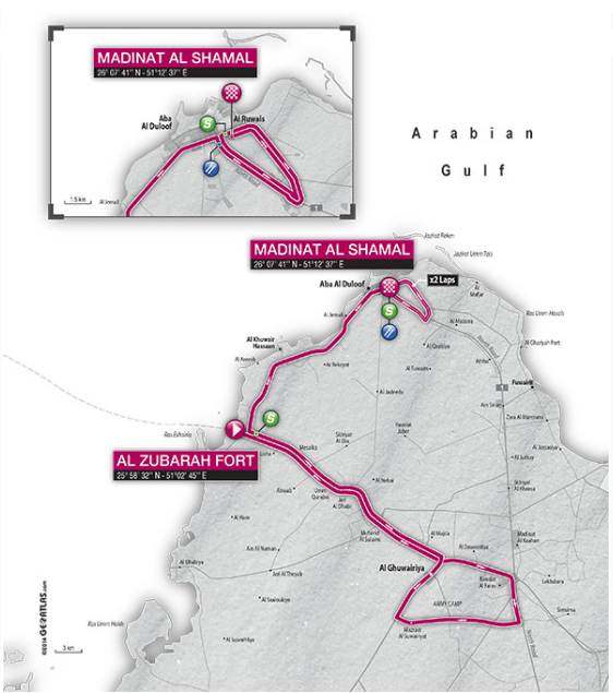 Por David Hunter Al Zubara Fort – Madinat ash-Shamal 153km ¡Alerta de vientos! Las ráfagas soplarán con fuerza desde el sudeste y eso implica que cuando el pelotón doble a la dercha rumbo a la ciudad pegará cruzado, con el riesgo de abanicos que eso significa. Cerca del horario de cierre se supone que sople…