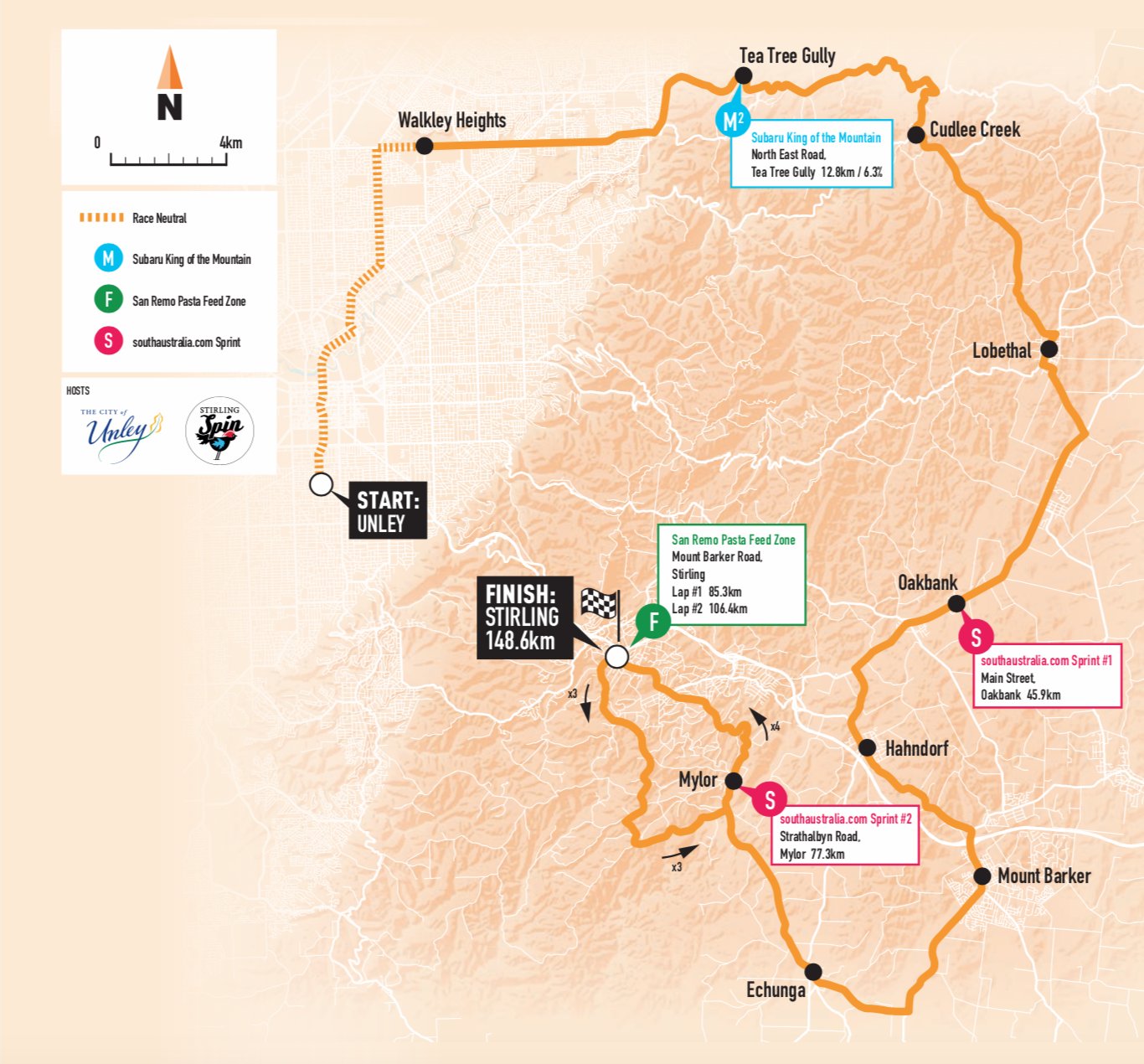 By David Hunter Unley – Stirling 148.6km Last year the organisers decided not to have the usual finish in Stirling, thankfully, they have brought it back. For those that love an uphill sprint, it doesn’t get much better than this.