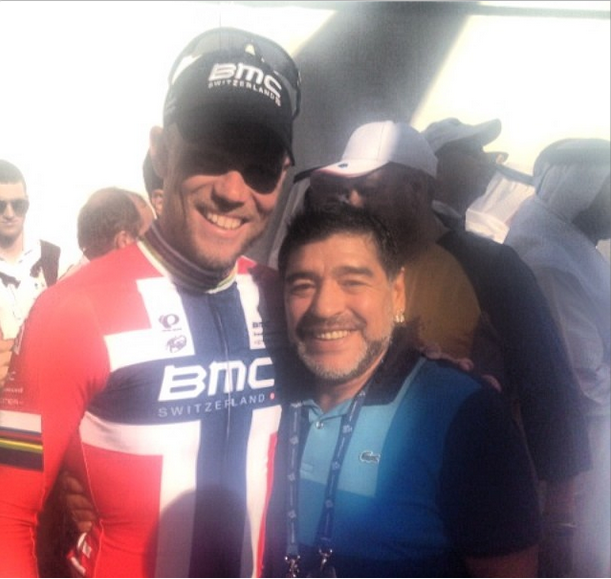 Por @pmpalermo Diego Maradona estuvo de visita en la última etapa del Tour de Dubai y, como suele suceder con el ex futbolista, fue sensación entre corredores y periodistas, todos ávidos de tomarse una foto o hacerle preguntas al argentino. Quién fuera el mejor futbolista de todos los tiempos y ahora entrenador, vive hace dos años…